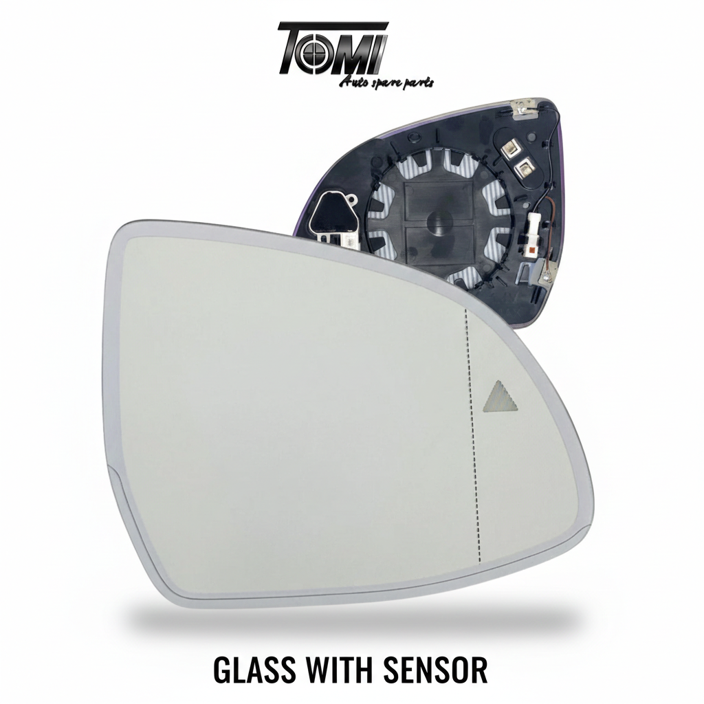 Mirror Glass with Sensor RH ? right-hand exterior side mirror glass with sensor; aftermarket replacement part, not a genuine BMW product
